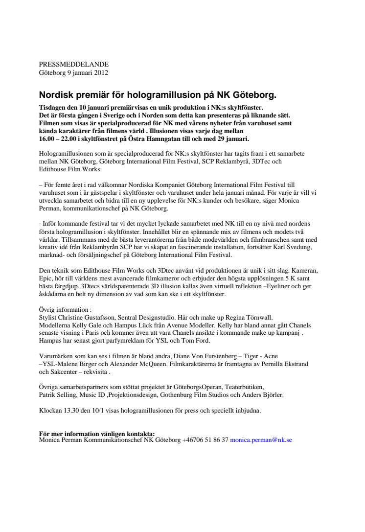 Nordisk premiär för hologramillusion på NK Göteborg.