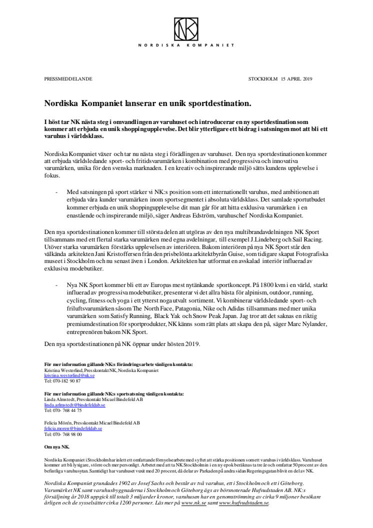 I höst tar NK nästa steg i omvandlingen av varuhuset och introducerar en ny sportdestination som kommer att erbjuda en unik shoppingupplevelse. Det blir ytterligare ett bidrag i satsningen mot att bli ett varuhus i världsklass.
