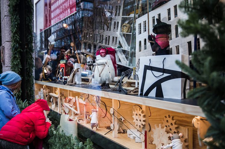 Årets skyltning visar det som händer när varuhuset förbereder inför jul.