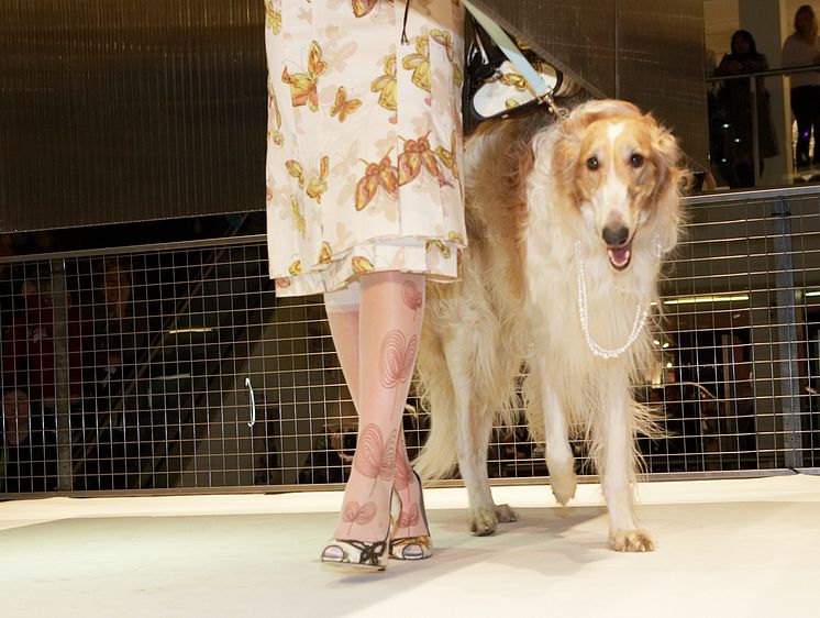 Elvis i ett vackert pärlcollier. Matte i kjol och skor från Karen Millen. Strumpor Vogue NK Underkläder.