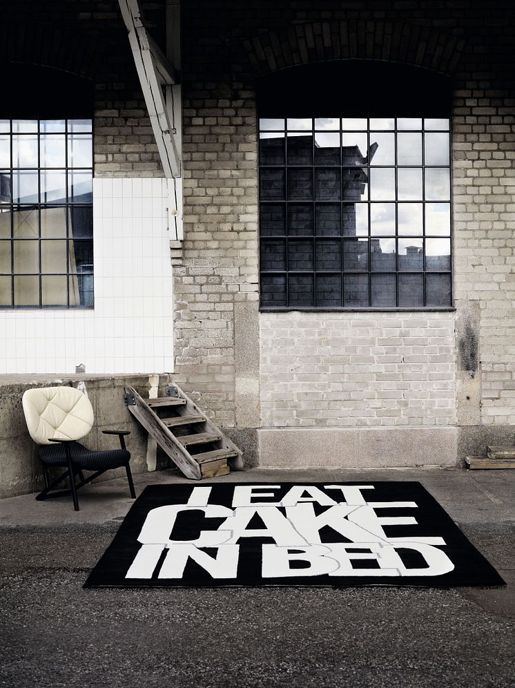 I samarbete med Therese Sennerholt, grafisk designer och Art Director, känd för sina citattavlor, lanserar NK Inredning en mattkollektion med samma grafiskt formgivna budskap. Mattorna kommer att säljas exklusivt på NK Inredning i Stockholm.