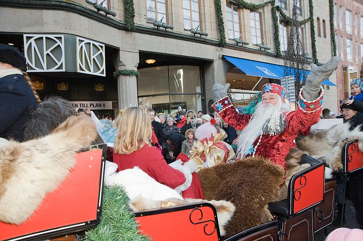 NK:s julskyltfönster avtäcktes söndagen den 23 november med pompa och ståt. Tomten anlände i häst och vagn, Stockholms hemvärnsoktett spelade och kör från Adolf Fredriks musikskola sjöng. Ta del av bilderna från den stämningsfulla dagen.