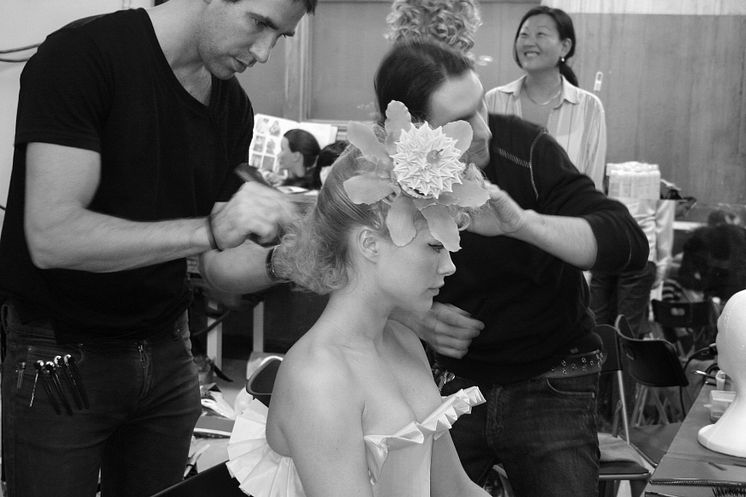"Modevisning på Nordiska Kompaniet lördagen den 25 mars kl 13, 15 och 17 i Ljusgården. NK:s chefskonditor Stefan Johnson Petersén och kostymören Emma Gauffin i ett nära samarbete där resultatet är både bärbart och ätbart. Modellerna bär plagg som är inspirerade av konfektyr och dekorerade med karameller, chokladpraliner, marsipan och spunnet socker." Fotograf: Katja Elmén