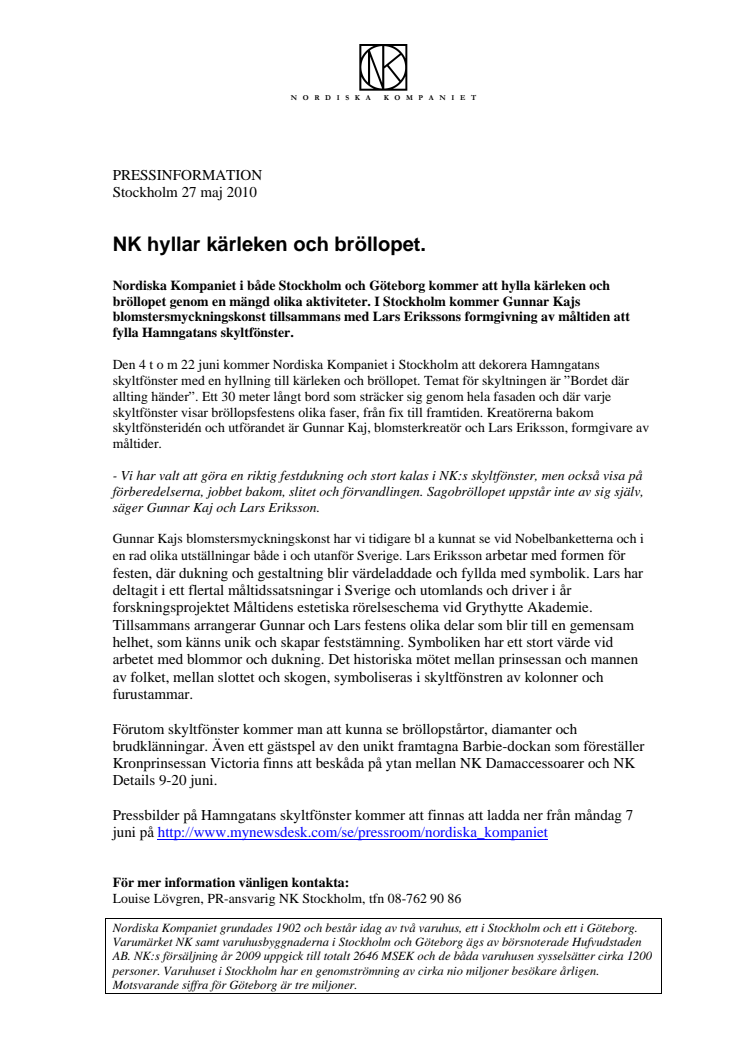 Louise Lövgren, PR-ansvarig NK Stockholm, tfn 08-762 90 86