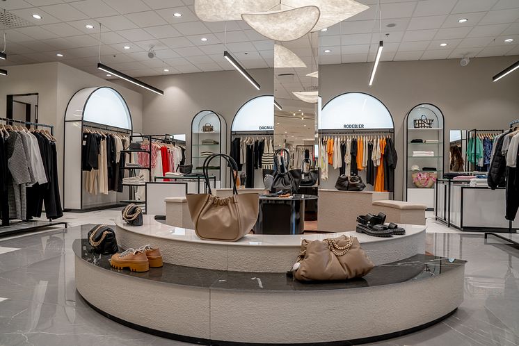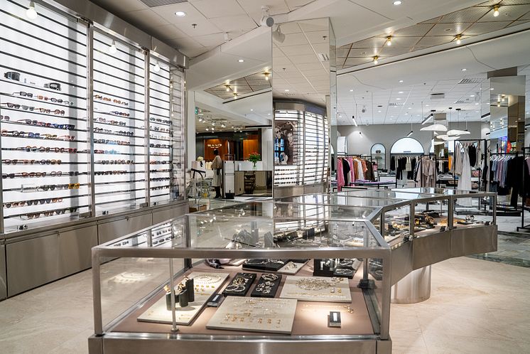 Accessoarer (fashion jewellery och solglasögon) flyttar också in på ytan, med varumärken som Alexander McQueen Eyewear, Bottega Veneta Glasses och Saint Laurent Glasses, samt ett välkurerat utbud av pre-loved accessoarer och väskor från modeplattformen Affordable Luxury som är en av Skandinaviens största säljare av vintageväskor och accessoarer från världsledande varumärken.