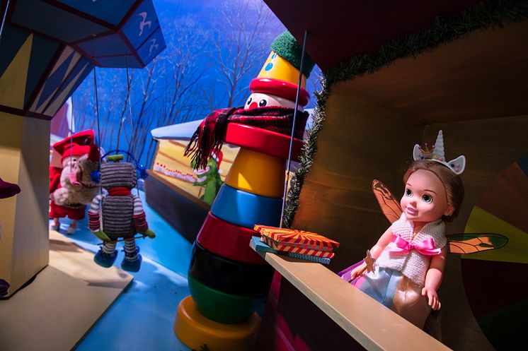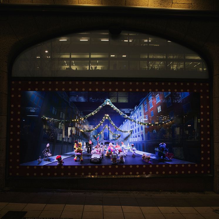 Ända sedan 1915 har Nordiska Kompaniet varit en självklar destination vid jul. I årets skyltfönster kommer leksaker till liv i en gnistrande musikal uppdelad i sex olika akter. Musikalen utspelar sig i stadens klassiska och fantasifulla kvarter, där våra städer tackas efter en lång pandemi och låter oss uppleva dess miljöer och julen på ett nytt sätt. I stället för att använda nya leksaker till skyltfönstrens karaktärer startade NK efter sommaren en leksaksinsamling där saker som behövde ett nytt liv lämnades in. Återanvändningen har förlängt leksakernas livslängd som nu blivit en del av julen på NK.