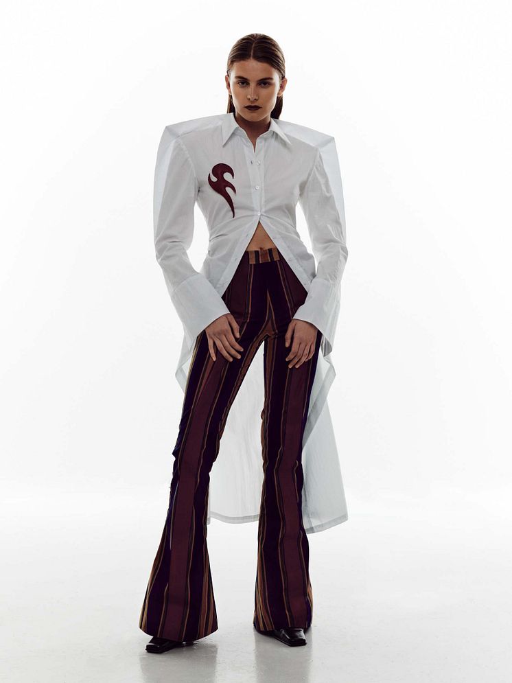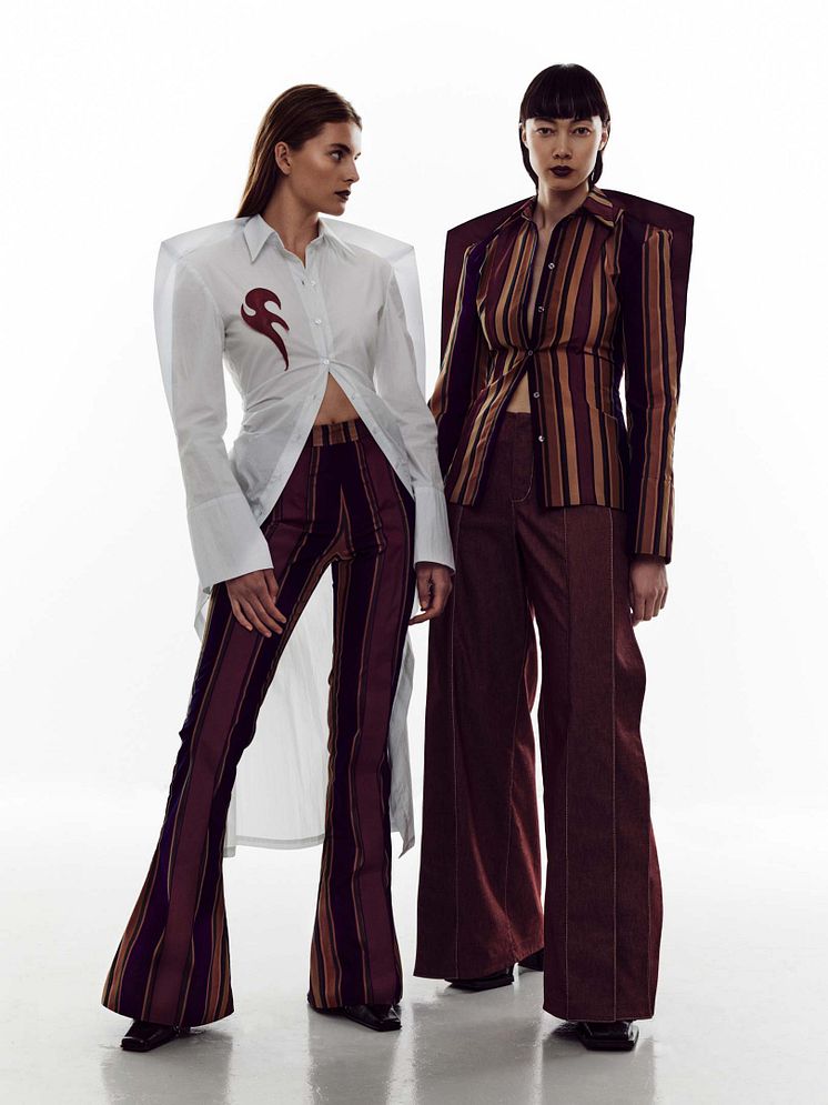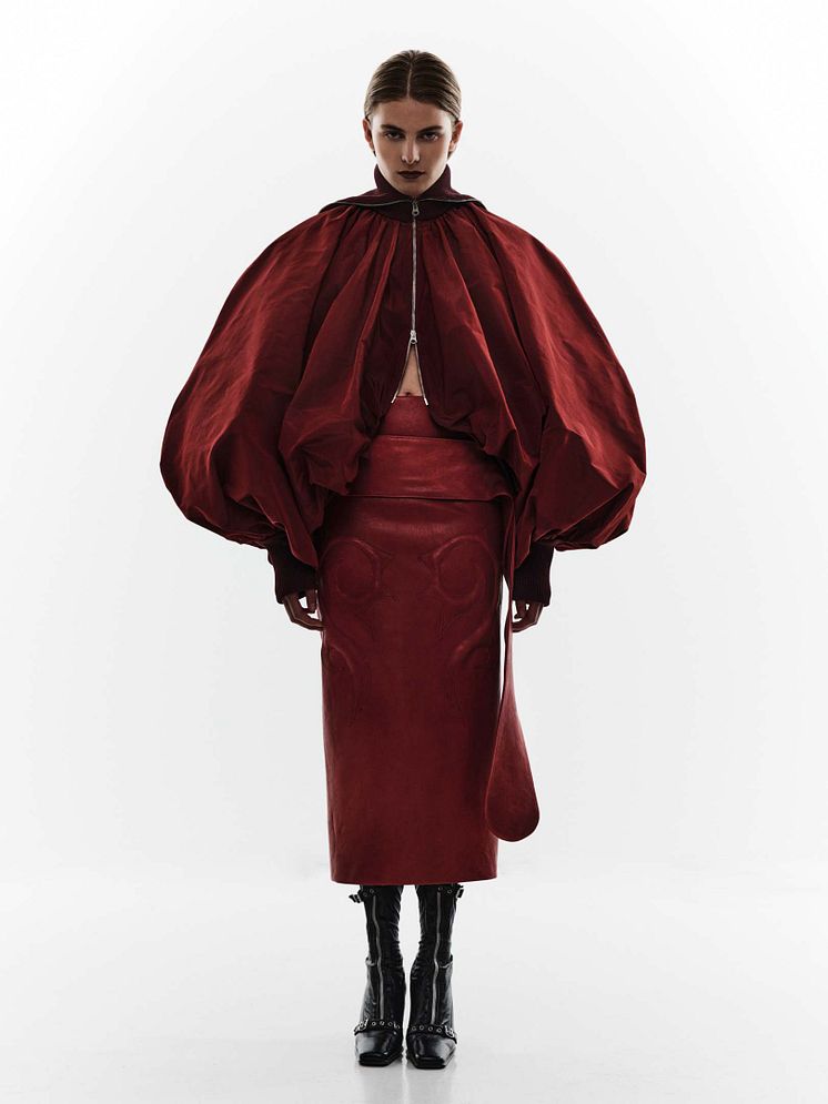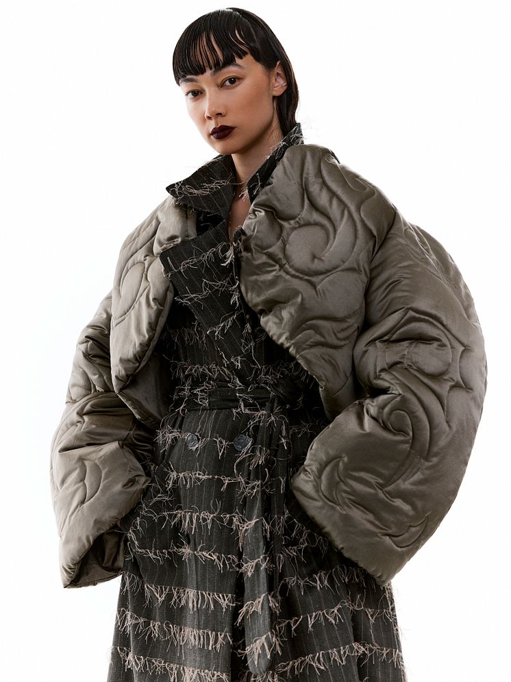 – I mitten av sidenvägen, en mötesplats av historia och världar, har jag mitt hem. Jag är Uigur, född och uppvuxen i Kina, och svensk medborgare. Denna interkulturella kollektion är en inre resa som återförenar mig med mina rötter, ett slags verktyg för att omforma min identitet som inkluderar alla mina kulturer, säger Saveja Awzel, pristagare av NK Young Talent Award by Beckmans.
